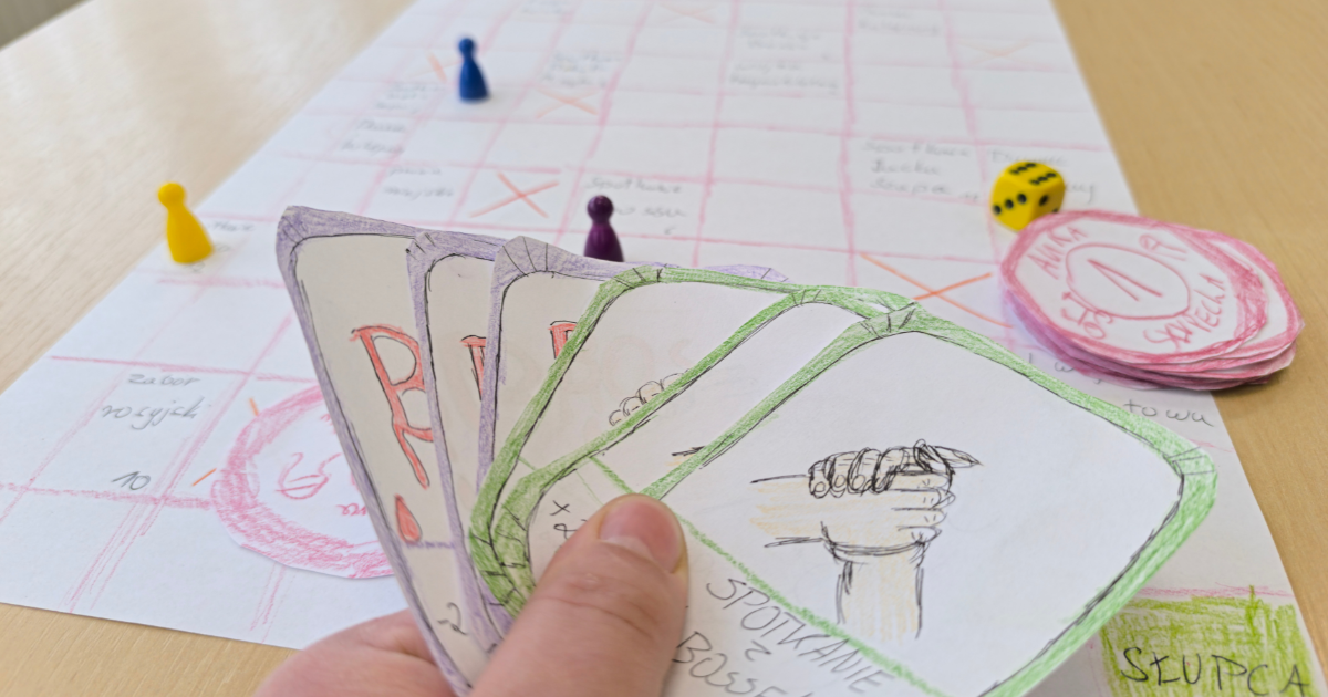 Wszystko zaczęło się od wspólnej rozmowy o tym, czym właściwie są gry i z czym kojarzą się dziś młodzieży. Na starcie najczęściej pojawiającym się skojarzeniem z istotą gier była rywalizacja. Jednak już pierwsze rozgrywki bardzo szybko pokazały, że równie ważnym – a często też ciekawszym – elementem rozgrywki jest kooperacja. Uczestnicy mieli okazję wyjść poza schemat znanych im wcześniej tytułów, takich jak Uno czy Monopoly, i poznać mechaniki znacznie bardziej złożone.